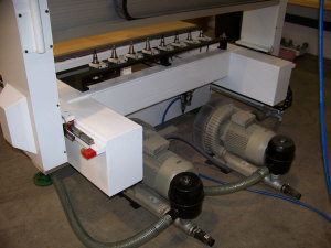 CNC Router Table, Note the Two 10 HP Blowers for Vacuum Hold Down.